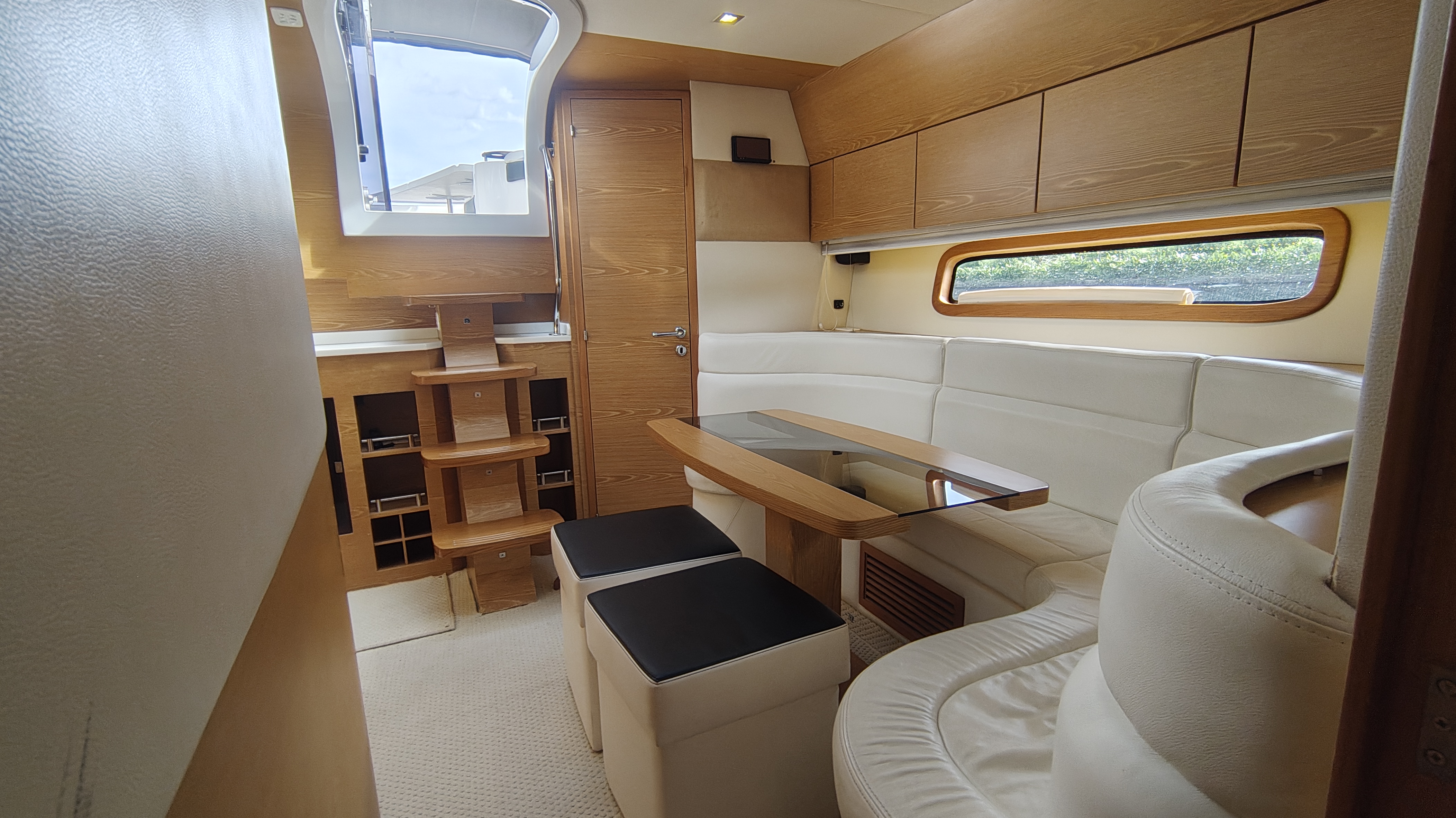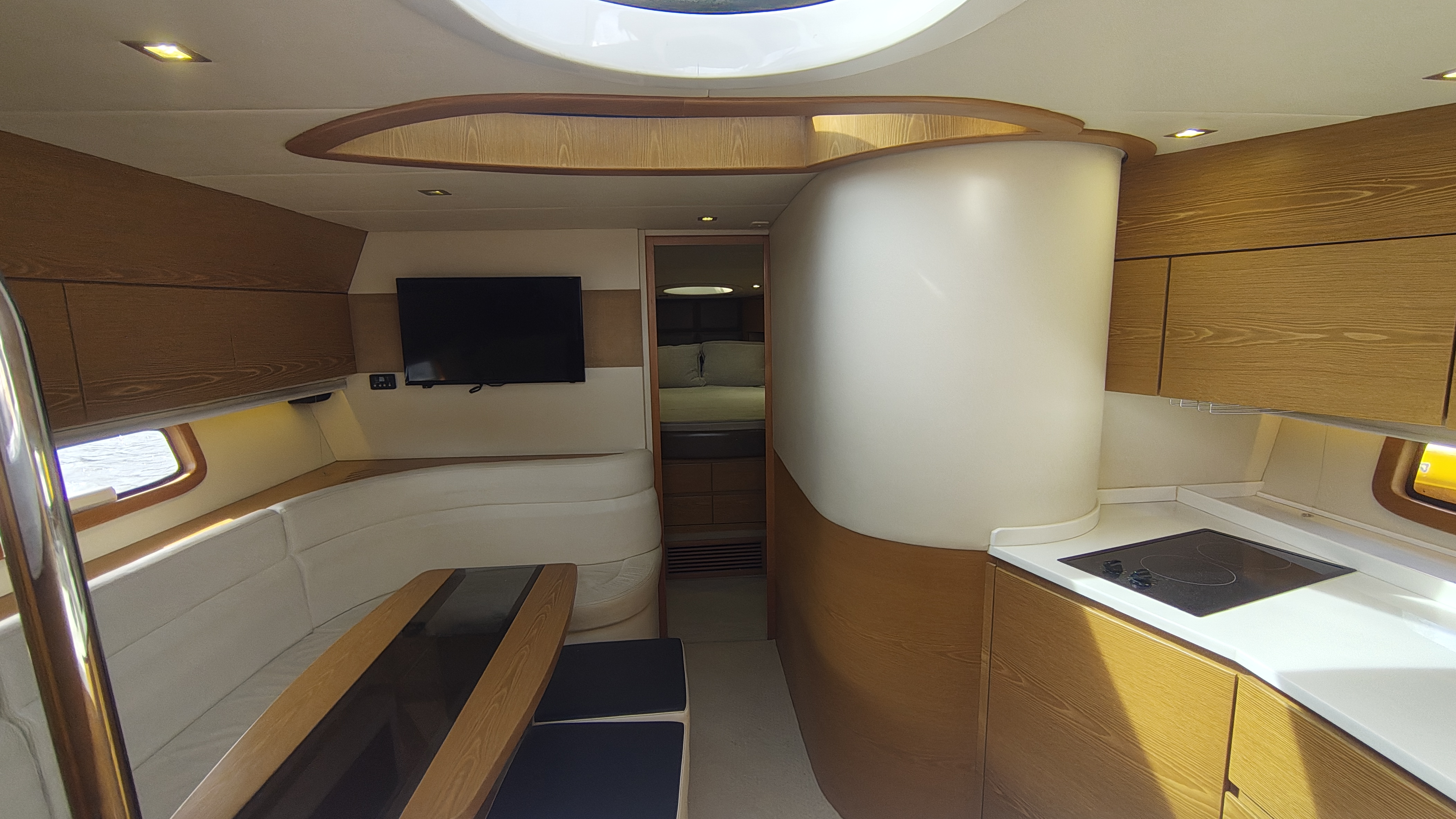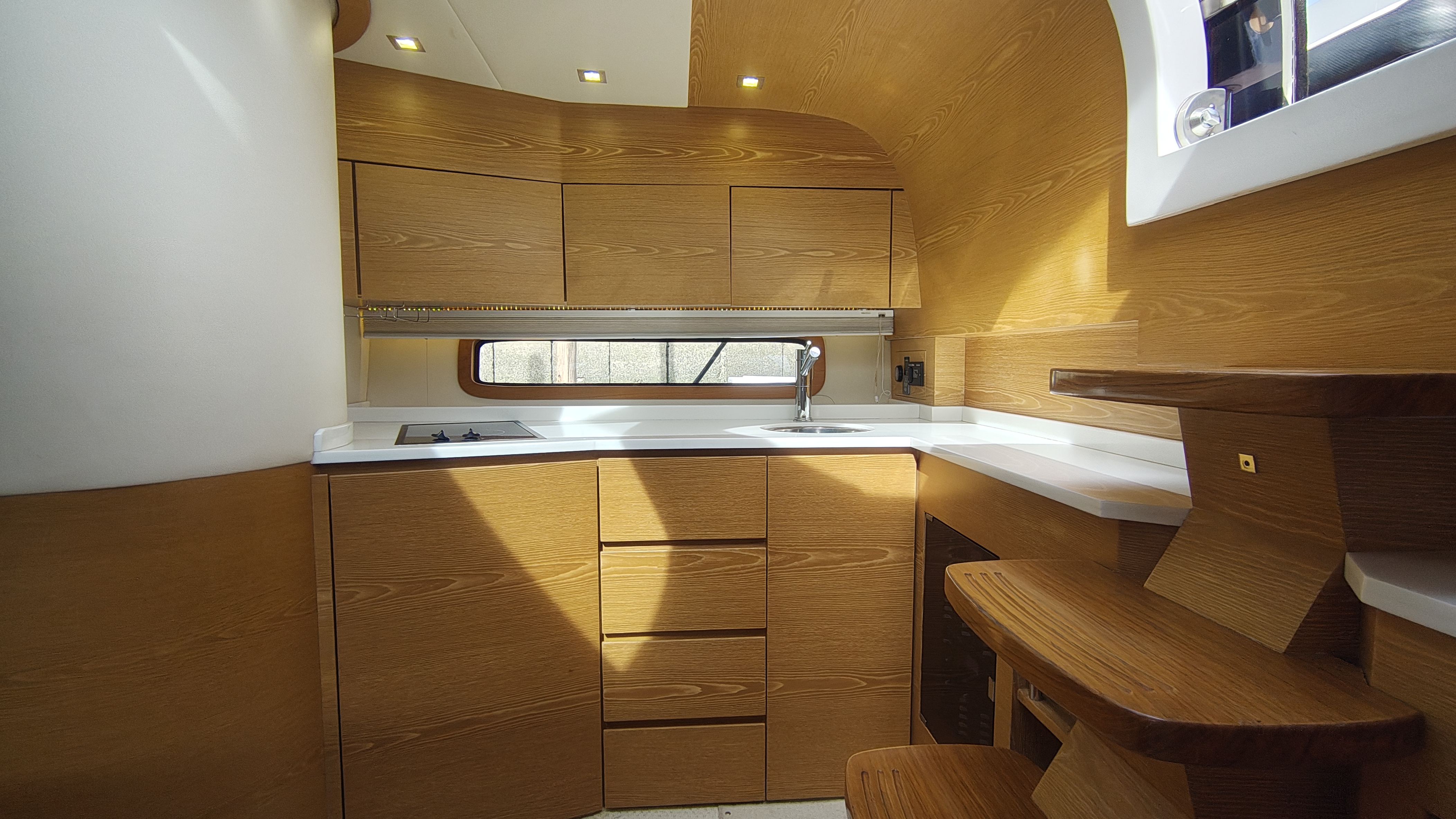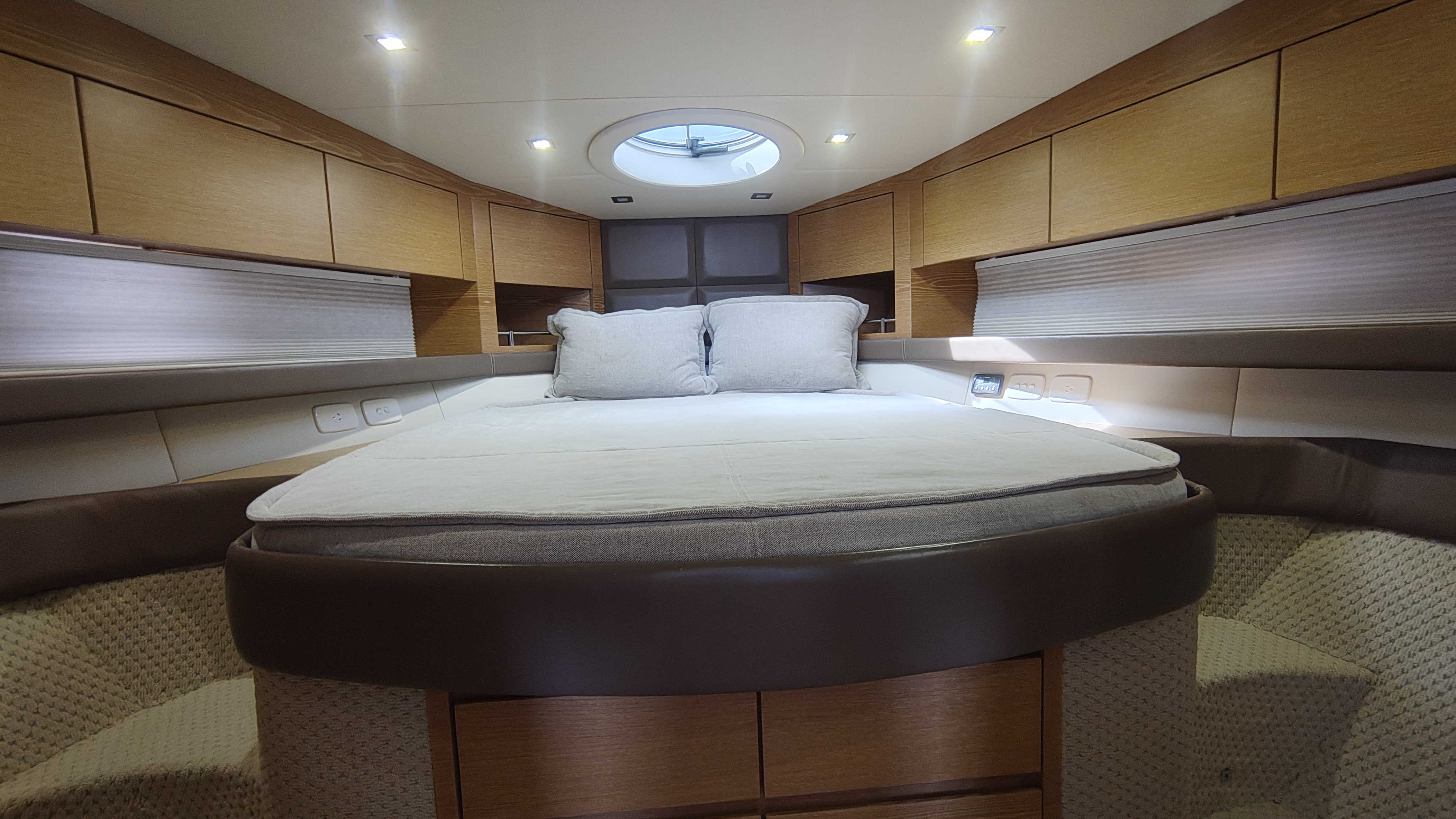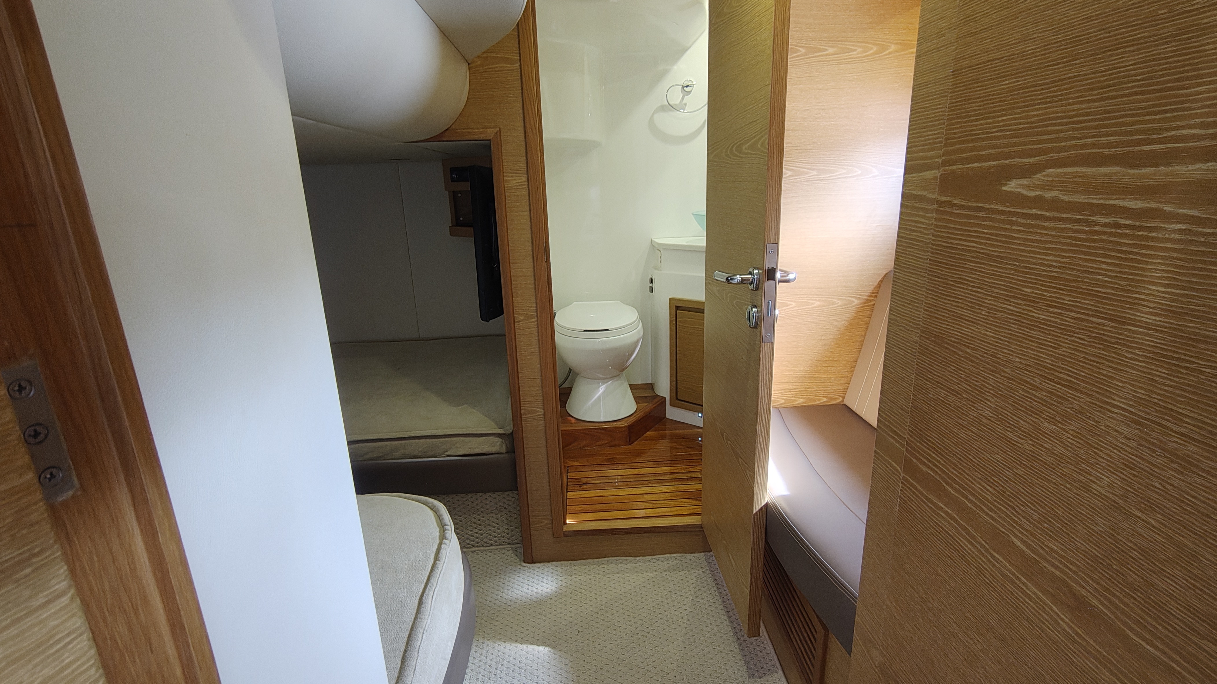 CAMAROTE EN PROA MATRIMONIAL CON CAMA AL CENTRO Y BAÑO EM SUITE - DINETTE SOBRE BABOR - COCINA SOBRE ESTRIBOR - CAMAROTE EN POPA CON DOS CAMAS PARALELAS CON BAÑO EN SUITE - AMPLIO COCKPIT Y TIMONERA CON SILLON ENVOLVENTE Y DINETTE - PLATAFORMA DE BAÑO CON GARAGE PARA DINGHY AUXILIAR